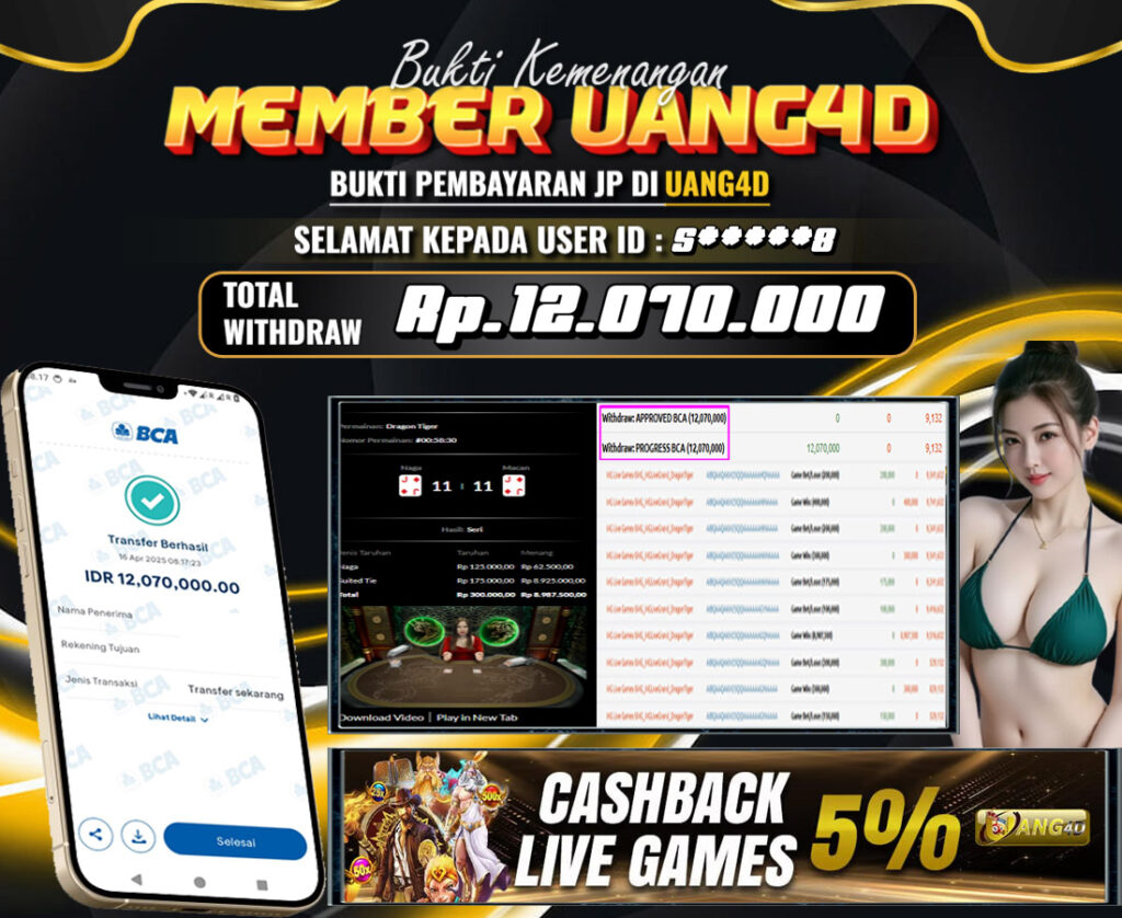 Jangan lewatkan kesempatan untuk meraih kemenangan besar. Daftar sekarang di UANG4D dan rasakan pengalaman bermain slot terbaik yang pernah ada! Putar gulungan, menangkan jackpot, dan jadilah bagian dari komunitas pemain sukses kami!