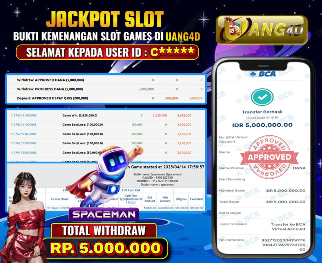 UANG4D –JACKPOT LIVE CASINO SPACEMAN 14 APRIL 2025, Kemenangan Casino, Bukti Kemenangan Casino, Kemenangan CasinoPragmatic , Menang CASINO online, Situs Aman Terpercaya, Withdraw Berapapun Pasti DI Bayar Tuntas, Maxwin CASINO Online.