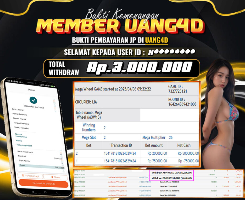 UANG4D – JACKPOT Live Games Mega Wheel 06 APRIL 2025, Jackpot Slot, Kemenangan Slot, Bukti Kemenangan Slot, Kemenangan Live Games PP-Blackjack, Menang Slot online, Slot Gacor, Situs Aman Terpercaya, Withdraw Berapapun Pasti DI Bayar Tuntas, Maxwin Slot Online.