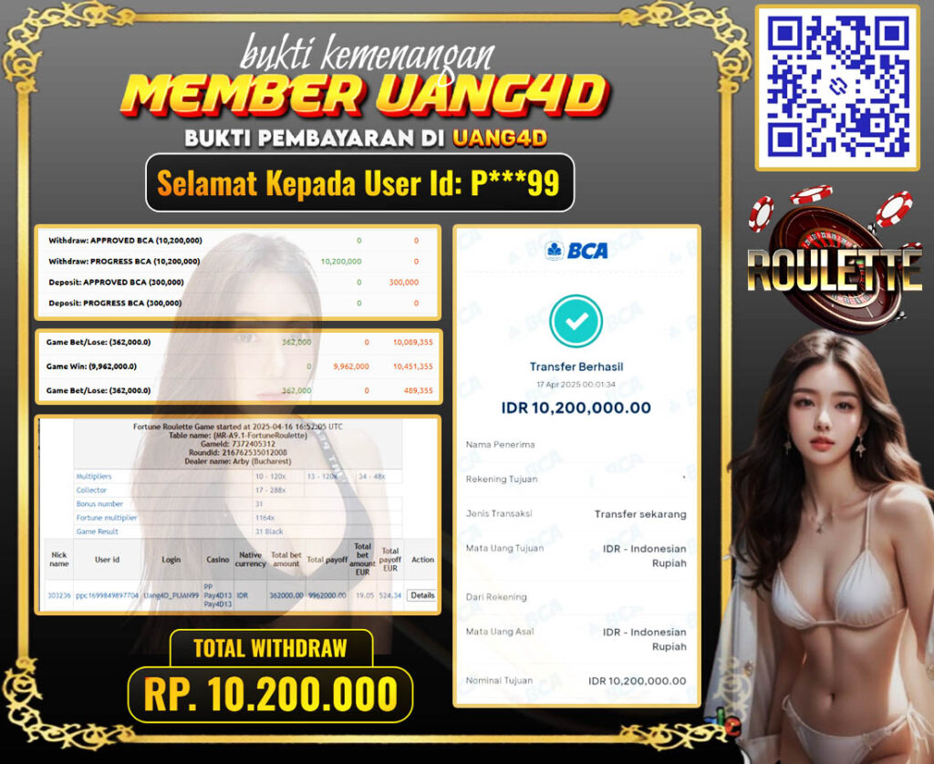 UANG4D – JACKPOT Live Games PP-Roulette 17 APRIL 2025, Jackpot casino, Kemenangan casino, Bukti Kemenangan casino, Kemenangan Live Games PP-Roulette, Menang casino online, Situs Aman Terpercaya, Withdraw Berapapun Pasti DI Bayar Tuntas, jacpot casino Online.