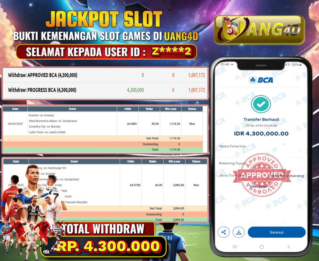UANG4D –JACKPOT PARLAY 06 APRIL 2025, Kemenangan Slot, Bukti Kemenangan Slot, Kemenangan Slot Pragmatic Play, Menang Slot online, Slot Gacor, Situs Aman Terpercaya, Withdraw Berapapun Pasti DI Bayar Tuntas, Maxwin Slot Online.