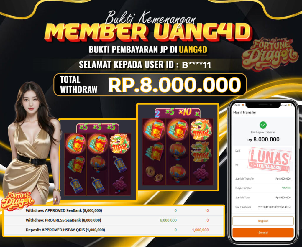 UANG4D –JACKPOT SLOT Fortune-Dragon 13 APRIL 2025 , Kemenangan Slot, Bukti Kemenangan Slot, Kemenangan Slot PG Soft, Menang Slot online, Slot Gacor, Situs Aman Terpercaya, Withdraw Berapapun Pasti DI Bayar Tuntas, Maxwin Slot Online.