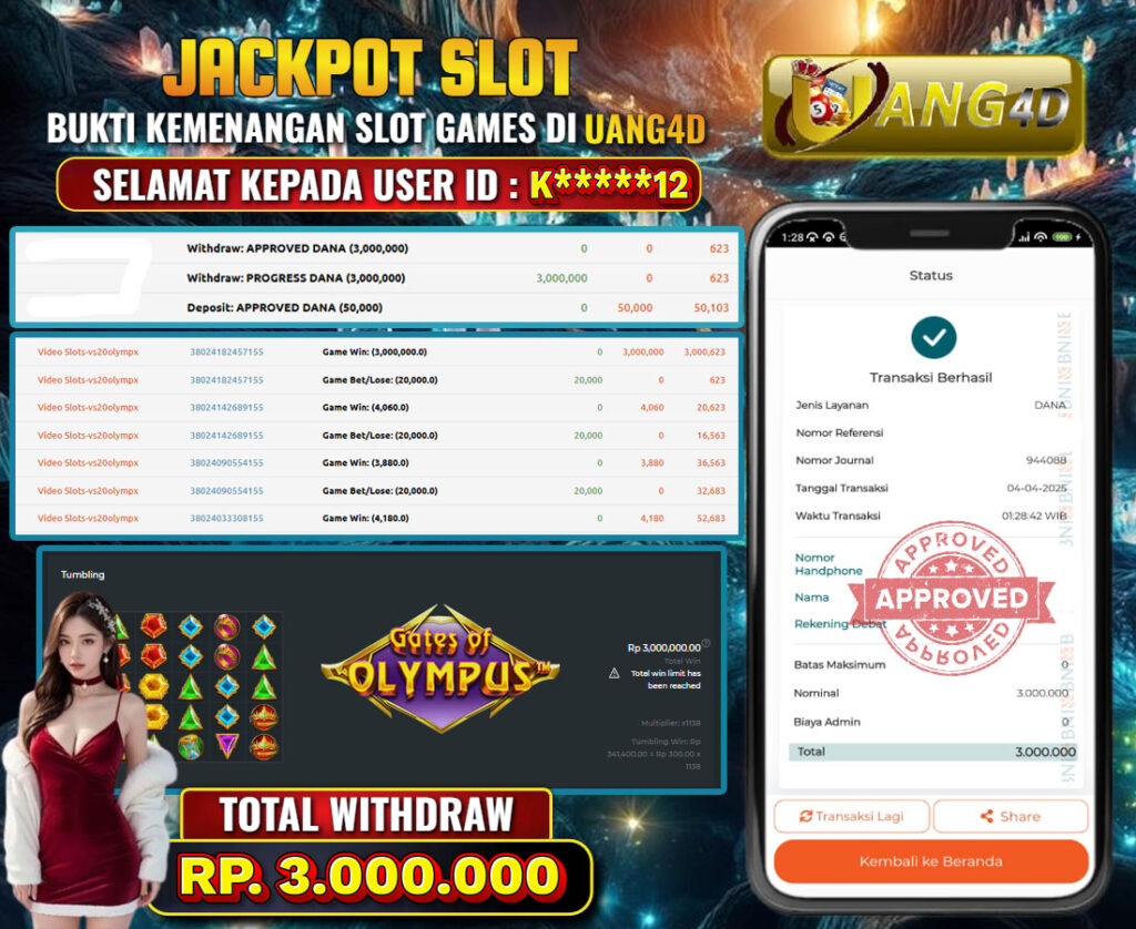 UANG4D– JACKPOT SLOT GACOR GETES OF OLYMPUS 04 APRIL 2025, Jackpot Slot, Kemenangan Slot, Bukti Kemenangan Slot, Kemenangan Slot Pragmatic Play, Menang Slot online, Slot Gacor, Situs Aman Terpercaya, WD Berapapun Pasti DI Bayar Tuntas, Maxwin Slot Online.