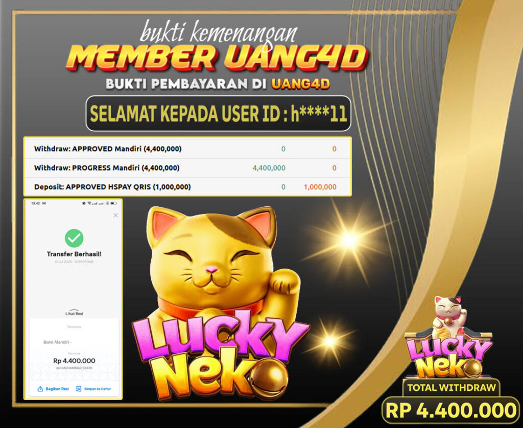 UANG4D– JACKPOT SLOT GACOR LUCKY NEKO 01 JULI 2025, Jackpot Slot, Kemenangan Slot, Bukti Kemenangan Slot, Kemenangan Slot Pragmatic Play, Menang Slot online, Slot Gacor, Situs Aman Terpercaya, WD Berapapun Pasti DI Bayar Tuntas, Maxwin Slot Online.