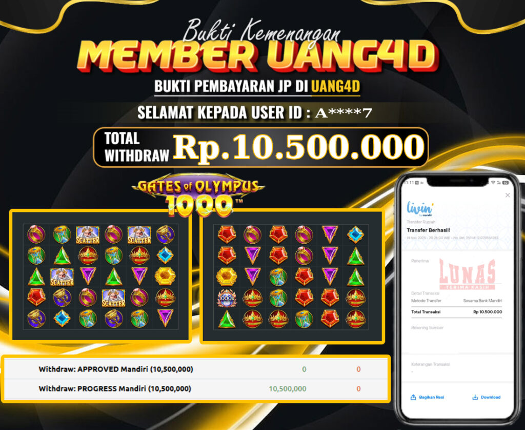 UANG4D –JACKPOT SLOT Gates of Olympus1000, 15, NOVEMBER 2025, Kemenangan Slot, Bukti Kemenangan Slot, Kemenangan Slot Pragmatic Play, Menang Slot online, Slot Gacor, Situs Aman Terpercaya, Withdraw Berapapun Pasti DI Bayar Tuntas, Maxwin Slot Online.