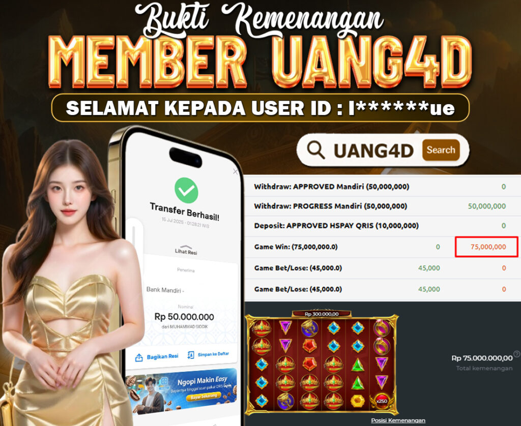 Jangan lewatkan kesempatan untuk meraih kemenangan besar. Daftar sekarang di UANG4D dan rasakan pengalaman bermain slot terbaik yang pernah ada! Putar gulungan, menangkan jackpot, dan jadilah bagian dari komunitas pemain sukses kami!