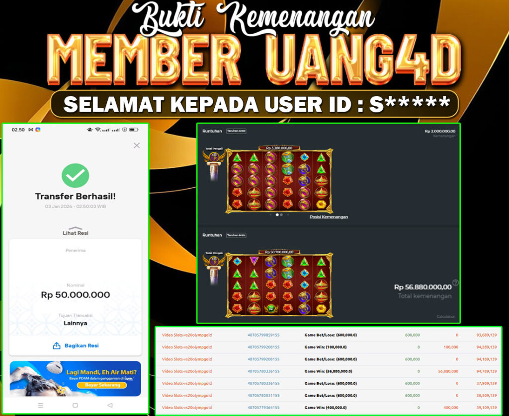 UANG4D JACKPOT SLOT GATES OF OLYMPUS SUPER SCETER 03 JANUARI 2026, Kemenangan Slot, Bukti Kemenangan Slot, Kemenangan Slot Pragmatic Play, Menang Slot online, Slot Gacor, Situs Aman Terpercaya, Withdraw Berapapun Pasti DI Bayar Tuntas, Maxwin Slot Online.