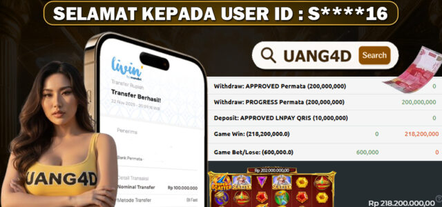Jangan lewatkan kesempatan untuk meraih kemenangan besar. Daftar sekarang di UANG4D dan rasakan pengalaman bermain slot terbaik yang pernah ada! Putar gulungan, menangkan jackpot, dan jadilah bagian dari komunitas pemain sukses kami!
