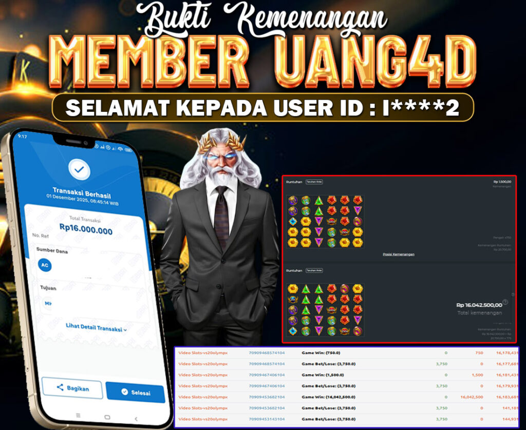UANG4D –JACKPOT SLOT Gates of Olympus1000, 01 DESEMBER 2025, Kemenangan Slot, Bukti Kemenangan Slot, Kemenangan Slot Pragmatic Play, Menang Slot online, Slot Gacor, Situs Aman Terpercaya, Withdraw Berapapun Pasti DI Bayar Tuntas, Maxwin Slot Online.