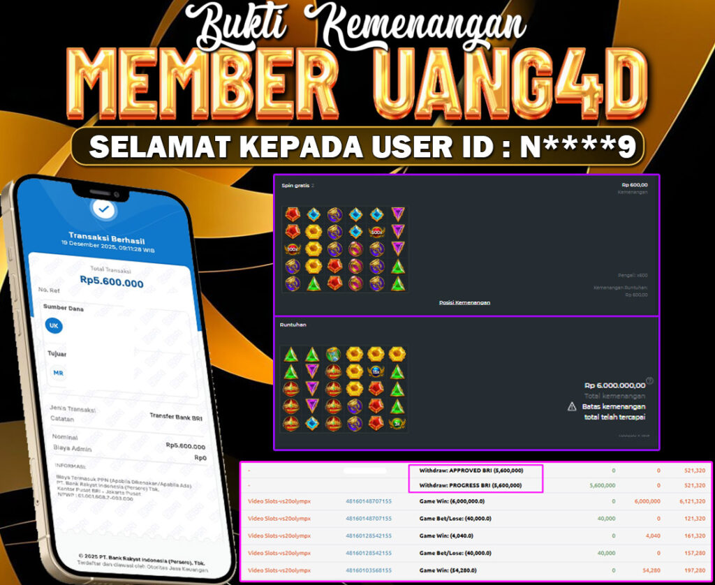 UANG4D –JACKPOT SLOT Gates of Olympus1000, 19 DESEMBER 2025, Kemenangan Slot, Bukti Kemenangan Slot, Kemenangan Slot Pragmatic Play, Menang Slot online, Slot Gacor, Situs Aman Terpercaya, Withdraw Berapapun Pasti DI Bayar Tuntas, Maxwin Slot Online.