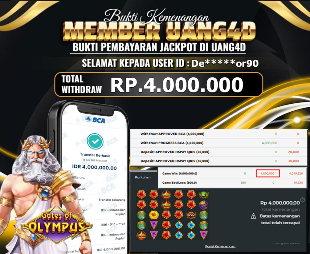 UANG4D –JACKPOT SLOT GATES OLYMPUS 18 APRIL 2025, Kemenangan Slot, Bukti Kemenangan Slot, Kemenangan Slot Pragmatic Play, Menang Slot online, Slot Gacor, Situs Aman Terpercaya, Withdraw Berapapun Pasti DI Bayar Tuntas, Maxwin Slot Online.