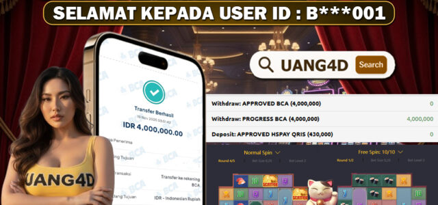 Jangan lewatkan kesempatan untuk meraih kemenangan besar. Daftar sekarang di UANG4D dan rasakan pengalaman bermain slot terbaik yang pernah ada! Putar gulungan, menangkan jackpot, dan jadilah bagian dari komunitas pemain sukses kami!
