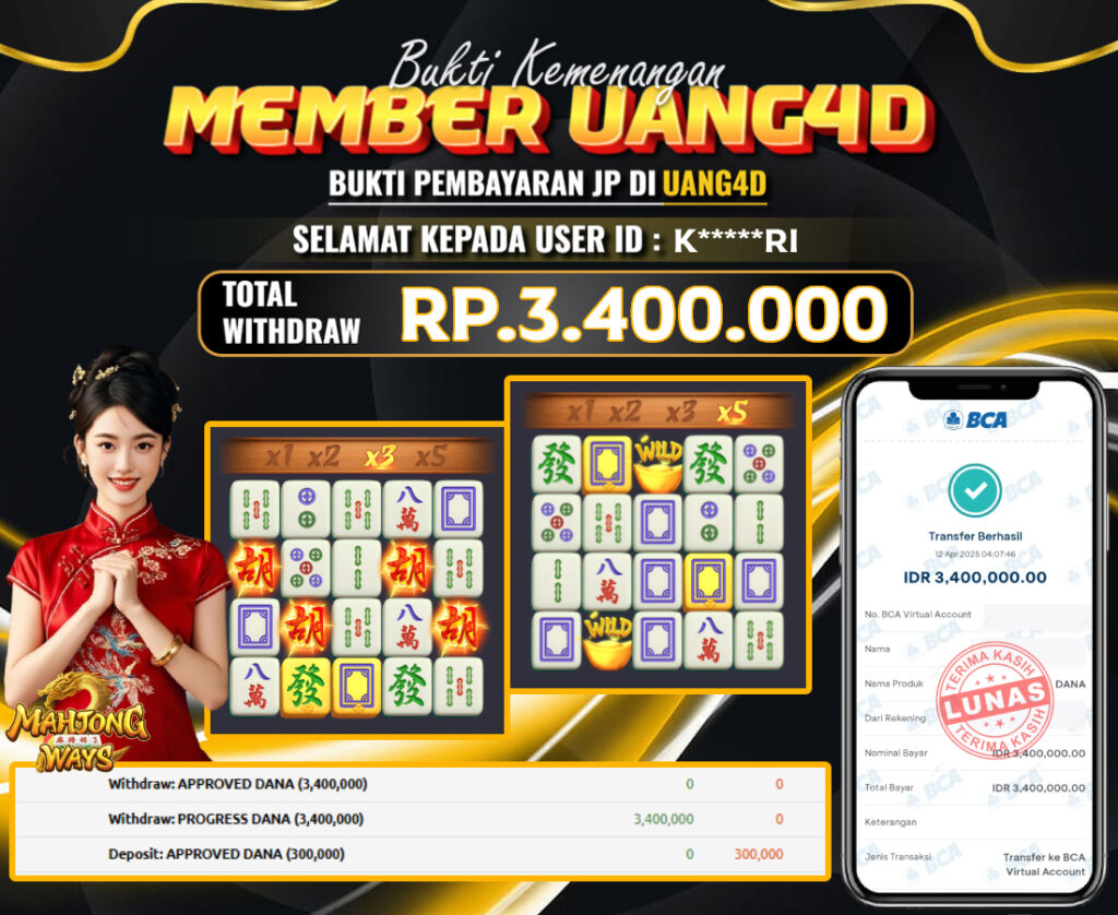 UANG4D JACKPOT SLOT MAHJONG WAYS 12 APRIL 2025 , Kemenangan Slot, Bukti Kemenangan Slot, Kemenangan Slot PG Soft, Menang Slot online, Slot Gacor, Situs Aman Terpercaya, Withdraw Berapapun Pasti DI Bayar Tuntas, Maxwin Slot Online.