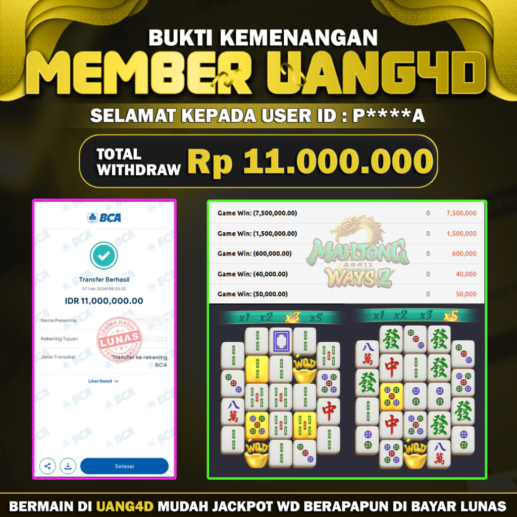 UANG4D –JACKPOT SLOT MAHJONG WAYS (2) 07 FEBRUARI 2026, Jackpot Slot, Kemenangan Slot, Bukti Kemenangan Slot, Kemenangan Slot PG SOFT Play, Menang Slot online, Slot Gacor, Situs Aman Terpercaya, Withdraw Berapapun Pasti DI Bayar Tuntas, Maxwin Slot Online.