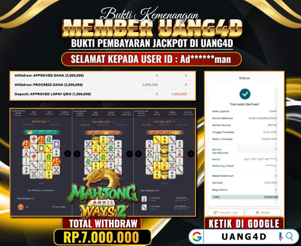 UANG4D JACKPOT SLOT MAHJONG WAYS-2 12 APRIL 2025 , Kemenangan Slot, Bukti Kemenangan Slot, Kemenangan Slot PG Soft, Menang Slot online, Slot Gacor, Situs Aman Terpercaya, Withdraw Berapapun Pasti DI Bayar Tuntas, Maxwin Slot Online.
