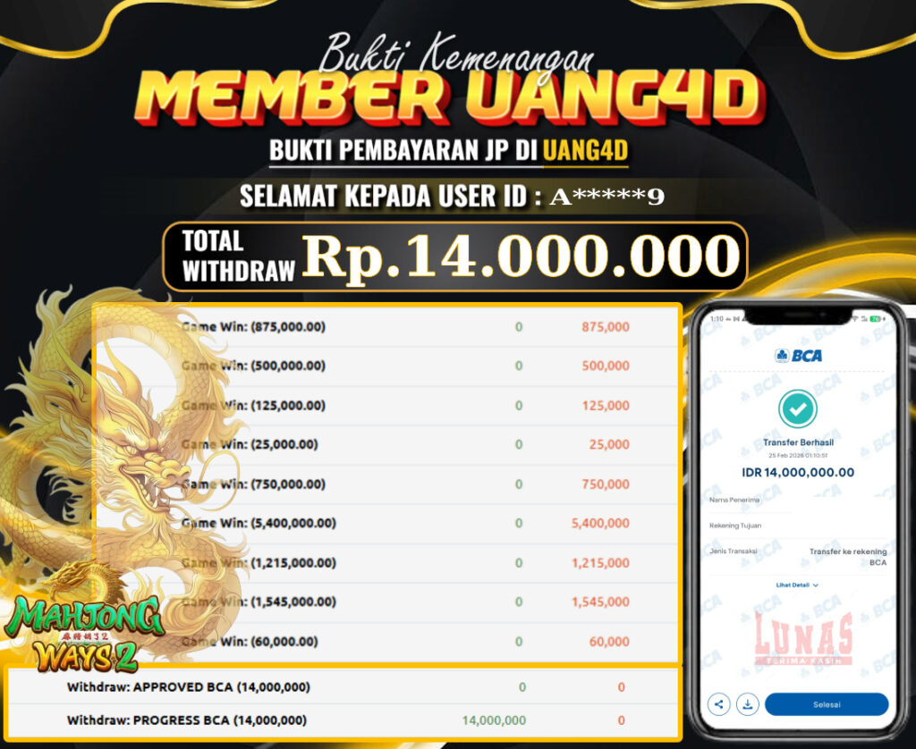 UANG4D –JACKPOT SLOT MAHJONG WAYS (2) 25 FEBRUARI 2026, Jackpot Slot, Kemenangan Slot, Bukti Kemenangan Slot, Kemenangan Slot PG SOFT Play, Menang Slot online, Slot Gacor, Situs Aman Terpercaya, Withdraw Berapapun Pasti DI Bayar Tuntas, Maxwin Slot Online.