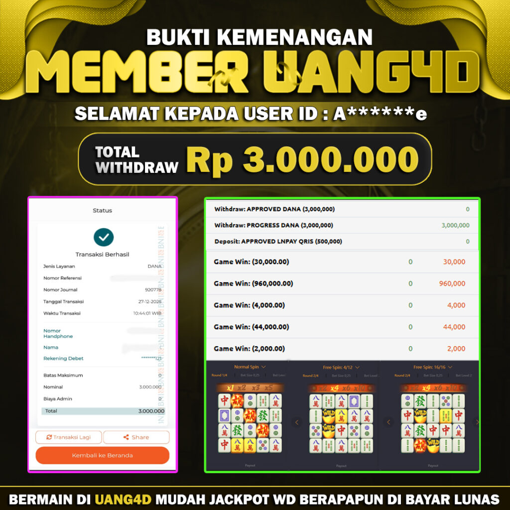 UANG4DJACKPOT SLOT MAHJONG WAYS 27 DESEMBER 2025, Jackpot Slot, Kemenangan Slot, Bukti Kemenangan Slot, Kemenangan Slot PG SOFT Play, Menang Slot online, Slot Gacor, Situs Aman Terpercaya, Withdraw Berapapun Pasti DI Bayar Tuntas, Maxwin Slot Online.