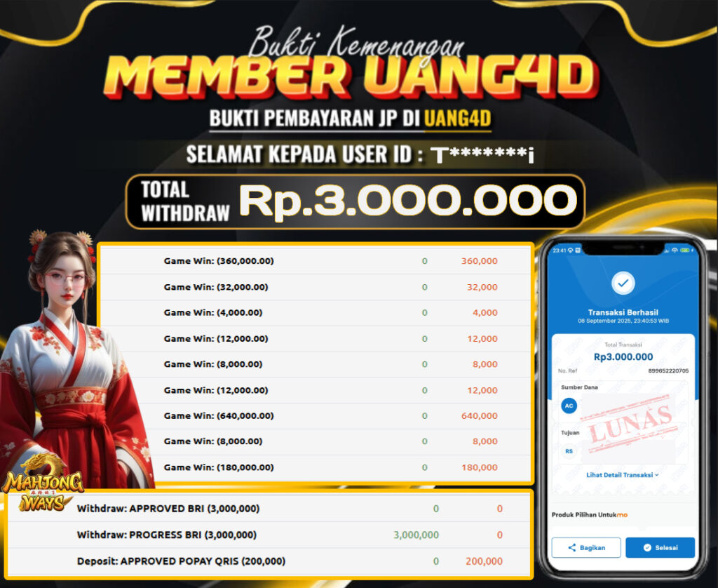 UANG4D – JACKPOT SLOT MAHYONG WAYS 09 SEPTEMBER 2025 , Jackpot Slot, Kemenangan Slot, Bukti Kemenangan Slot, Kemenangan Slot PG SOFT Play, Menang Slot online, Slot Gacor, Situs Aman Terpercaya, Withdraw Berapapun Pasti DI Bayar Tuntas, Maxwin Slot Online.