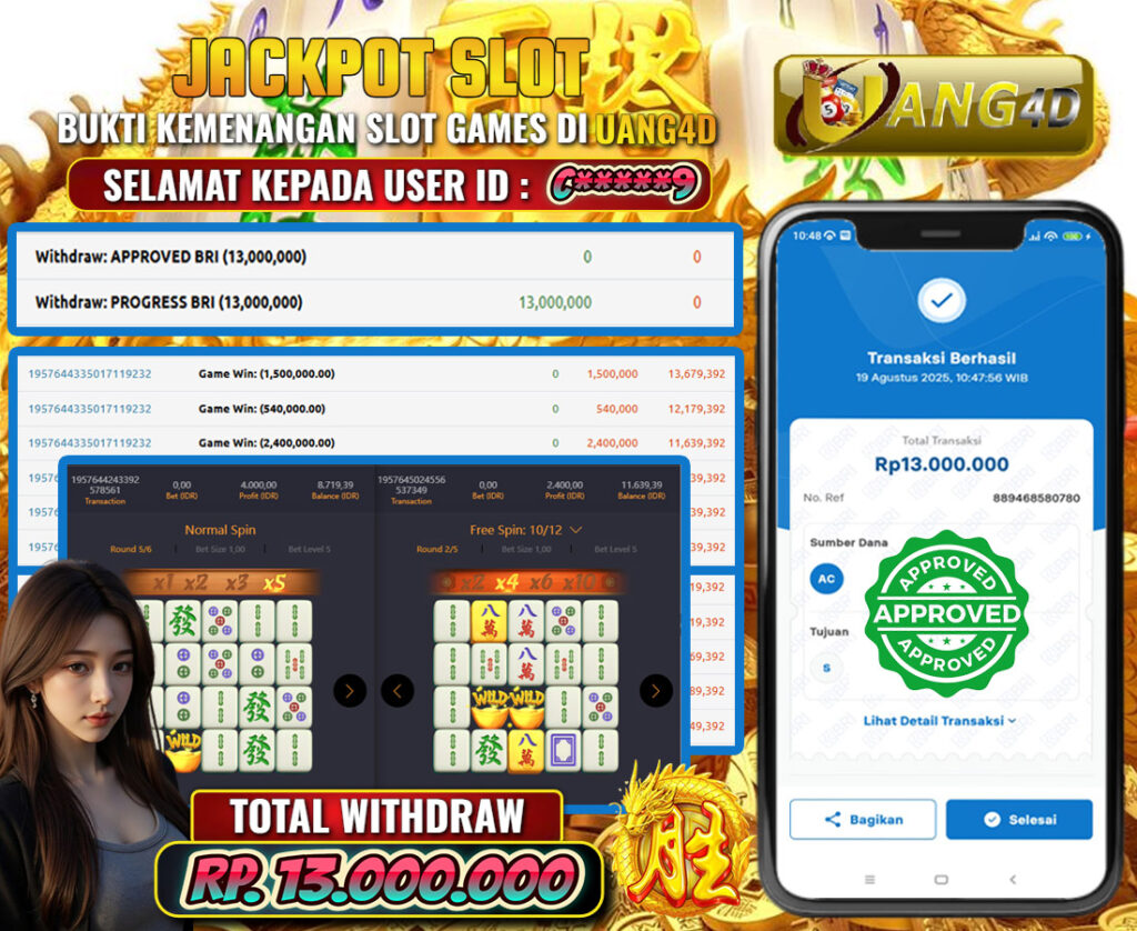 UANG4D – JACKPOT SLOT MAHYONG WAYS 19 AGUSTUS 2025 , Jackpot Slot, Kemenangan Slot, Bukti Kemenangan Slot, Kemenangan Slot PG SOFT Play, Menang Slot online, Slot Gacor, Situs Aman Terpercaya, Withdraw Berapapun Pasti DI Bayar Tuntas, Maxwin Slot Online.