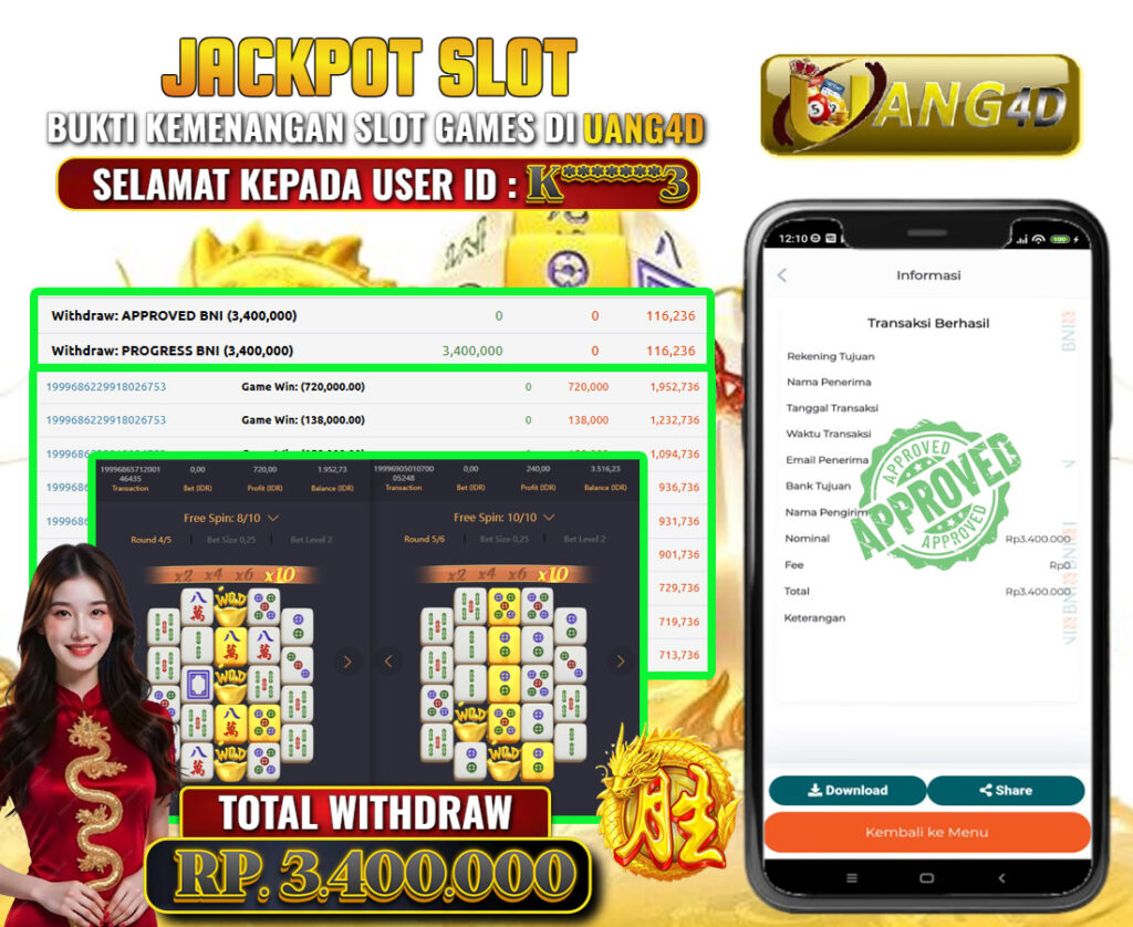 Jangan lewatkan kesempatan untuk meraih kemenangan besar. Daftar sekarang di UANG4D dan rasakan pengalaman bermain slot terbaik yang pernah ada! Putar gulungan, menangkan jackpot, dan jadilah bagian dari komunitas pemain sukses kami!
