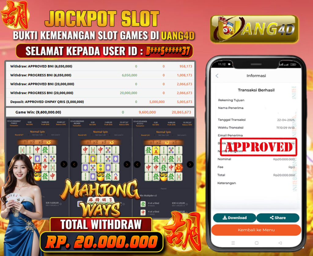 UANG4D – JACKPOT SLOT MAHYONG WAYS , Jackpot Slot, Kemenangan Slot, Bukti Kemenangan Slot, Kemenangan Slot Pragmatic Play, Menang Slot online, Slot Gacor, Situs Aman Terpercaya, Withdraw Berapapun Pasti DI Bayar Tuntas, Maxwin Slot Online.