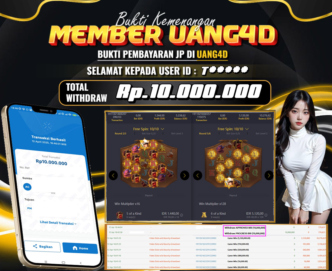 Jangan lewatkan kesempatan untuk meraih kemenangan besar. Daftar sekarang di UANG4D dan rasakan pengalaman bermain slot terbaik yang pernah ada! Putar gulungan, menangkan jackpot, dan jadilah bagian dari komunitas pemain sukses kami!