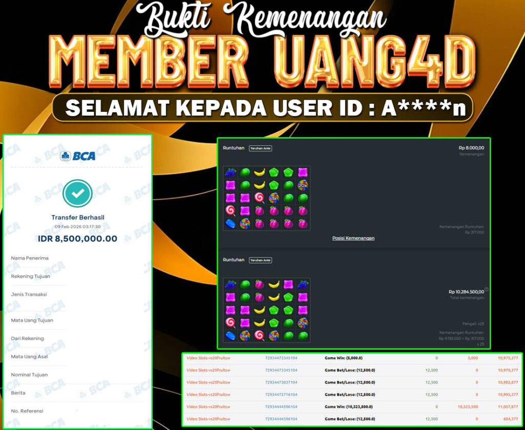 UANG4D JACKPOT SLOT SWEET BONANZA 09 FEBRUARI 2026, Kemenangan Slot, Bukti Kemenangan Slot, Kemenangan Slot Pragmatic Play, Menang Slot online, Slot Gacor, Situs Aman Terpercaya, Withdraw Berapapun Pasti DI Bayar Tuntas, Maxwin Slot Online.