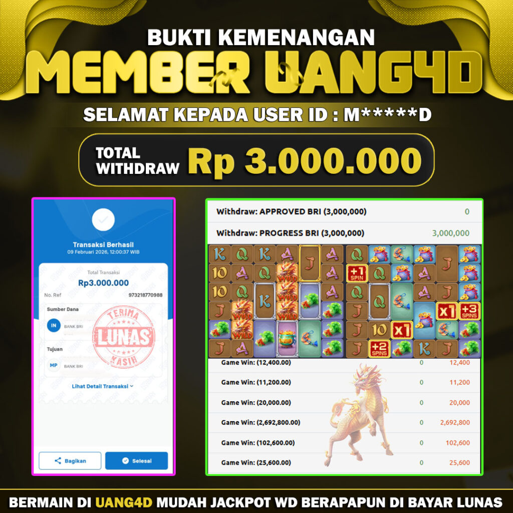 UANG4D JACKPOT SLOT WAYS OF-QILIN 09,FEBUARI,2026, Jackpot Slot, Kemenangan Slot, Bukti Kemenangan Slot, Kemenangan Slot PG SOFT, Menang Slot online, Slot Gacor, Situs Aman Terpercaya, Withdraw Berapapun Pasti DI Bayar Tuntas, Maxwin Slot Online.