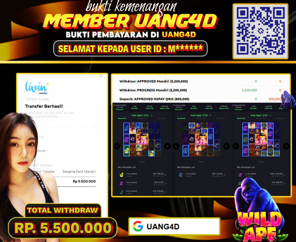 UANG4D – JACKPOT SLOT Wild-Ape 03, 2025 , Jackpot Slot, Kemenangan Slot, Bukti Kemenangan Slot, Kemenangan Slot PG SOFT Play, Menang Slot online, Slot Gacor, Situs Aman Terpercaya, Withdraw Berapapun Pasti DI Bayar Tuntas, Maxwin Slot Online.