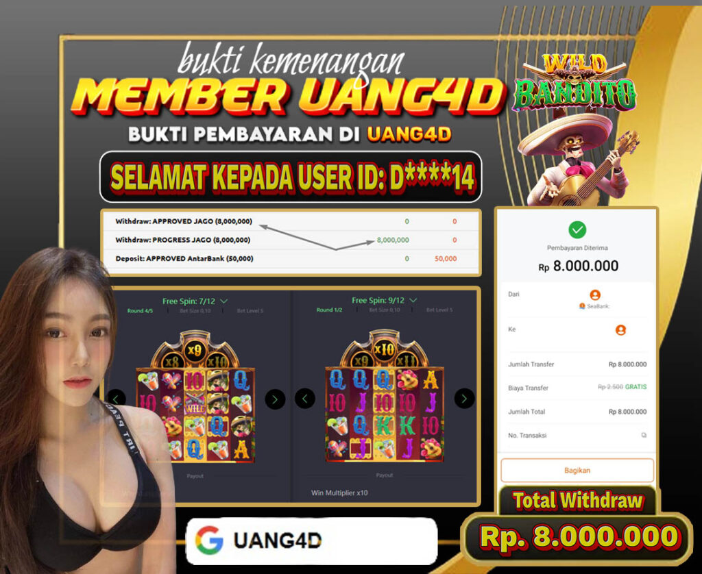 UANG4D JACKPOT SLOT Wild-Bandito 19 APRIL 2025, Kemenangan Slot, Bukti Kemenangan Slot, Kemenangan Slot Pragmatic Play, Menang Slot online, Slot Gacor, Situs Aman Terpercaya, Withdraw Berapapun Pasti DI Bayar Tuntas, Maxwin Slot Online.
