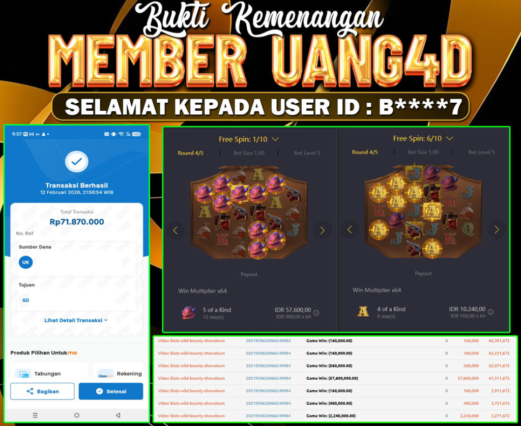 UANG4D –JACKPOT SLOT WILD BOUNTY SHOWDOWN 13 FEBUARI 2026 Jackpot Slot, Kemenangan Slot, Bukti Kemenangan Slot, Kemenangan Slot PG SOFT Play, Menang Slot online, Slot Gacor, Situs Aman Terpercaya, Withdraw Berapapun Pasti DI Bayar Tuntas, Maxwin Slot Online.