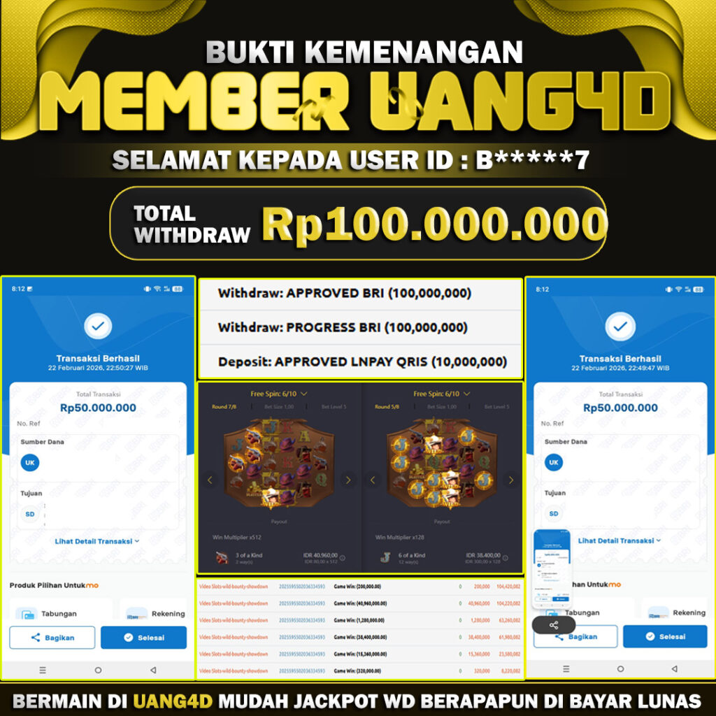 Jangan lewatkan kesempatan untuk meraih kemenangan besar. Daftar sekarang di UANG4D dan rasakan pengalaman bermain slot terbaik yang pernah ada! Putar gulungan, menangkan jackpot, dan jadilah bagian dari komunitas pemain sukses kami!