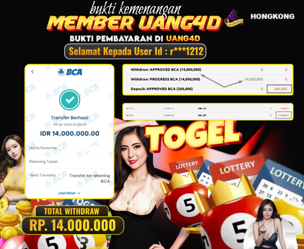 Setiap hari, member UANG4D berhasil meraih jackpot besar dari berbagai provider togel ternama yang kami sediakan, seperti Sydney, Singapore, Hongkong dan masih banyak lagi. Kami secara rutin menampilkan bukti screenshot atau rekapan kemenangan yang berhasil diraih, mulai dari kemenangan ratusan ribu hingga puluhan juta rupiah. Semua slip kemenangan ini kami hadirkan untuk membuktikan bahwa di UANG4D, peluang menang itu nyata.
