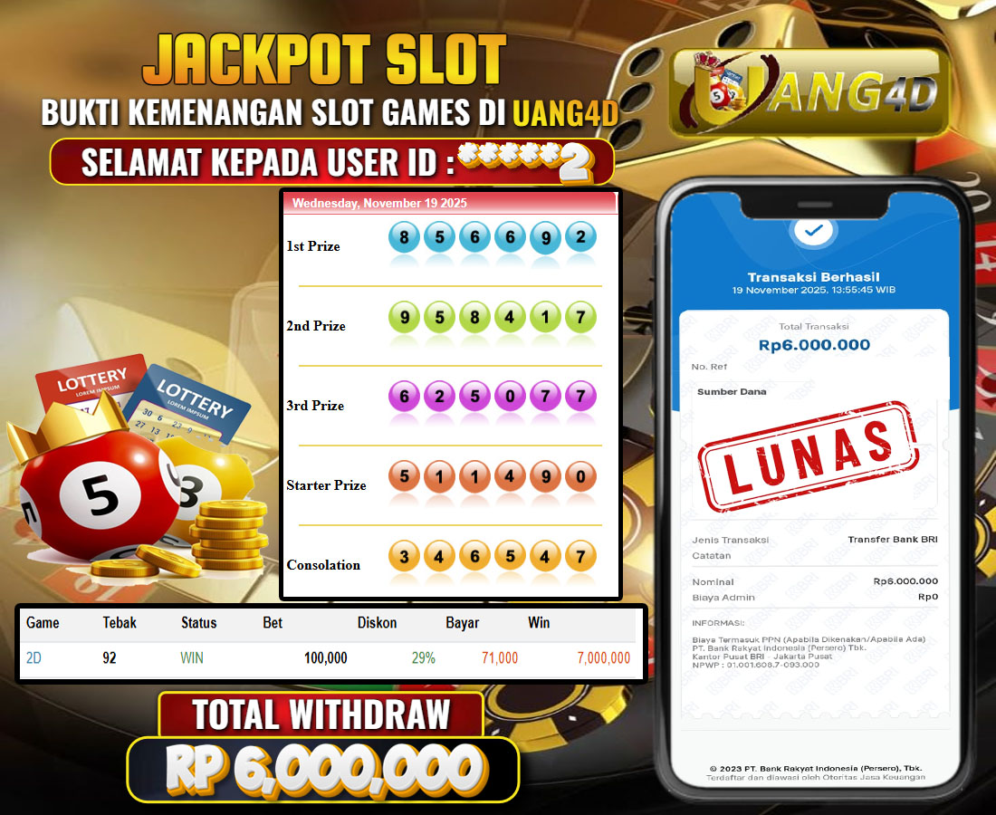 UANG4D dikenal sebagai situs terpercaya yang selalu menghadirkan pengalaman bermain slot online yang aman, fair, dan berlisensi resmi. Di sini, kami tidak hanya sekadar memberikan janji, tapi bukti nyata berupa slip kemenangan yang dapat Anda lihat secara langsung.