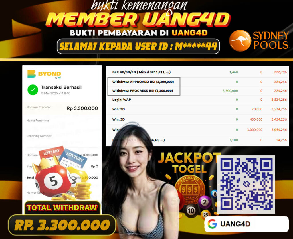 Setiap hari, member UANG4D berhasil meraih jackpot besar dari berbagai provider togel ternama yang kami sediakan, seperti Sydney, Singapore, Hongkong dan masih banyak lagi. Kami secara rutin menampilkan bukti screenshot atau rekapan kemenangan yang berhasil diraih, mulai dari kemenangan ratusan ribu hingga puluhan juta rupiah. Semua slip kemenangan ini kami hadirkan untuk membuktikan bahwa di UANG4D, peluang menang itu nyata.