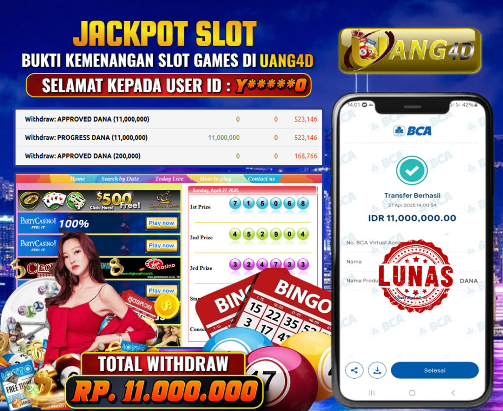 UANG4D dikenal sebagai situs terpercaya yang selalu menghadirkan pengalaman bermain slot online yang aman, fair, dan berlisensi resmi. Di sini, kami tidak hanya sekadar memberikan janji, tapi bukti nyata berupa slip kemenangan yang dapat Anda lihat secara langsung.