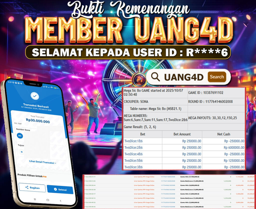 Setiap hari, member UANG4D berhasil meraih jackpot besar dari berbagai macam permainan livecasino ternama yang kami sediakan, seperti Roullete, Dragon & Tiger, Qiu Qiu dan masih banyak lagi. Kami secara rutin menampilkan bukti screenshot atau rekapan kemenangan yang berhasil diraih, mulai dari kemenangan ratusan ribu hingga puluhan juta rupiah. Semua slip kemenangan ini kami hadirkan untuk membuktikan bahwa di UANG4D, peluang menang itu nyata.